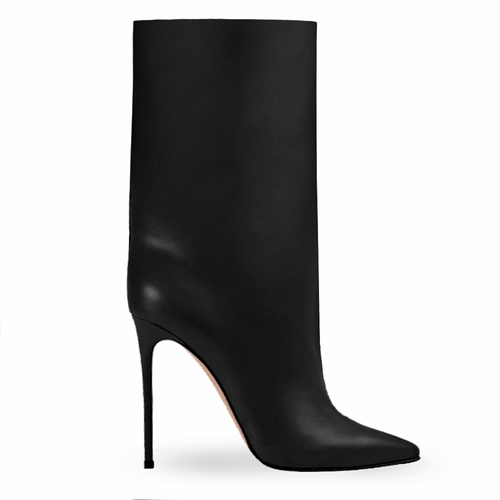 Tubular boot under the calf in genuine leather with 100mm and 120mm stiletto heel