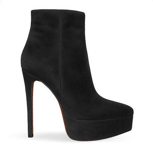 Pointed stiletto ankle boot in genuine suede with internal zipper, 3.5cm platform and 13cm heel