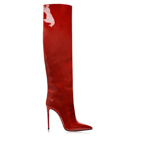 Tubular pointed toe boot in patent leather with 100mm or 120mm stiletto heel