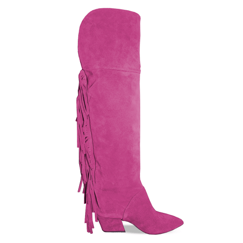Bota tubular con punta afilada en ante con flecos y tacón medio de 60mm