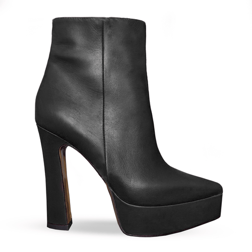 Botín de punta afilada en piel auténtica con cremallera interna, plataforma de 3.5cm y tacón de 13cm