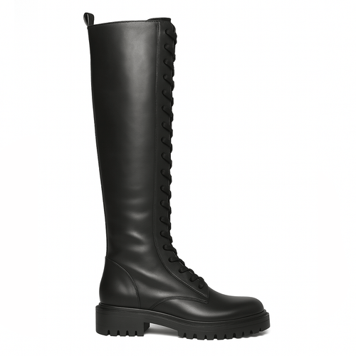 Stivale in vera pelle con punta tonda e fondo in gomma carrarmato