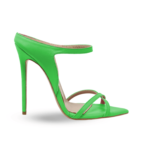 Spitze Sandale mit Vorderbändern und Knöchelriemchen. 100 mm oder 120 mm Pfennigabsatz